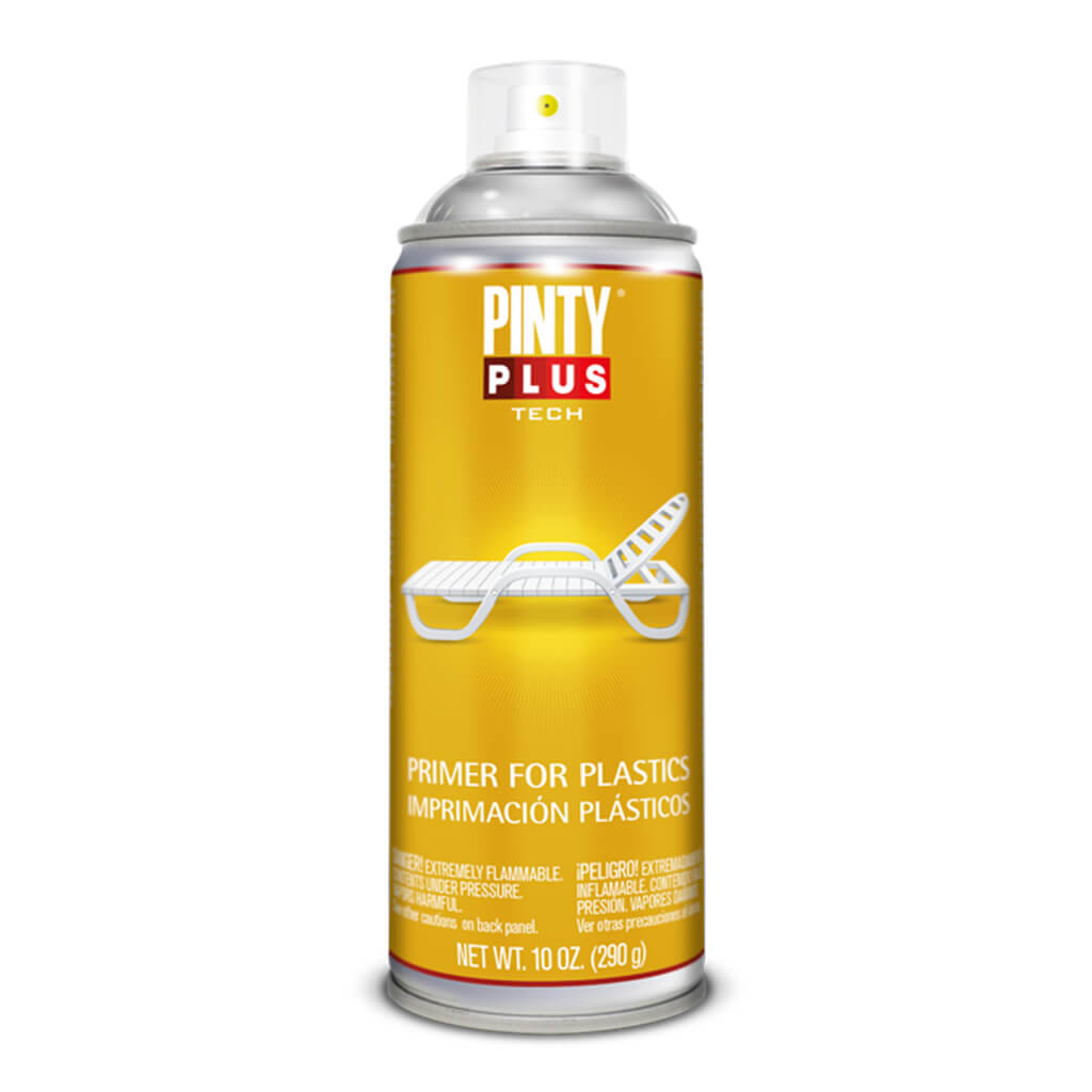 Imprimación en spray incolora para plásticos de Pintyplus Tech. Aumenta el poder de anclaje de la superficie a pintar. Idóneo sobre plástico rígido o con cierta flexibilidad.