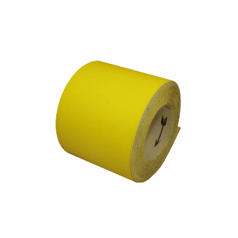 Rollo lija en seco línea amarilla para madera y yeso. Medida de 115mm. x 5m.