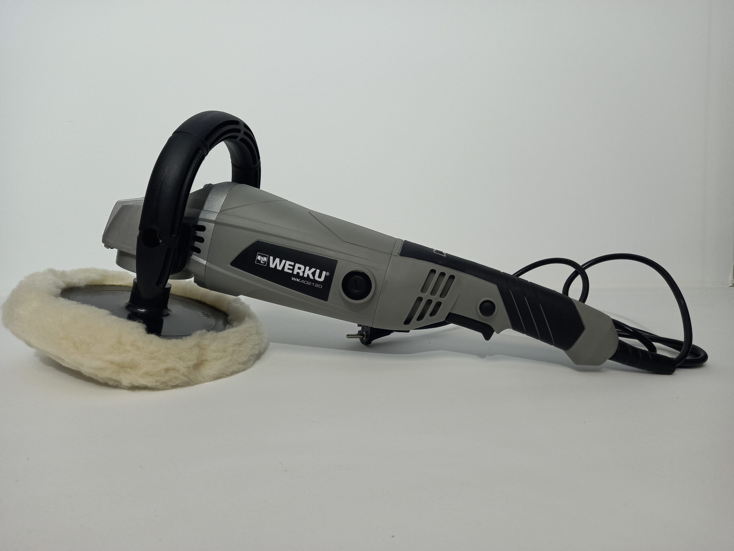 Pulidora de 1400w y 1000-3000 RPM, con agarre ergonómico antideslizante.